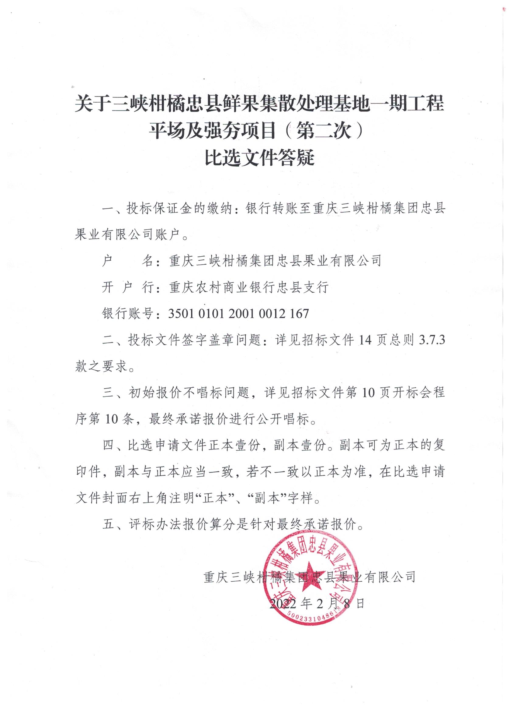 三峡柑橘忠县鲜果集散处理基地一期工程 平场及强夯项目比选公告(第二次)