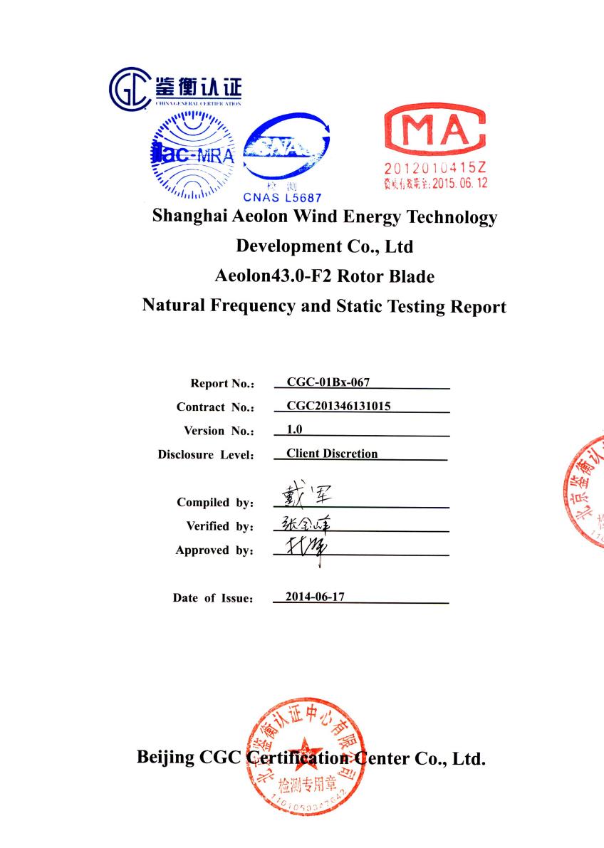 前二阶固有频率(拍向) 1st/2nd flapwise frequency | 0.75/2.29Hz |